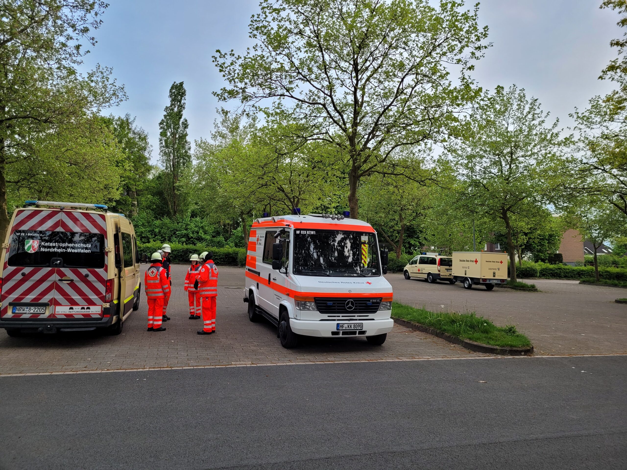 Als Örtlichkeit wurde der Parkplatz der Weser-Sekundarschule Vlotho ausgewählt mit dem Übungsszenario, dass aufgrund eines Feuerwehreinsatzes die Bewohner*innen der nahe liegenden Drosselstraße evakuiert und kurzfristig untergebracht werden mussten. Für die Unterbringung der Bewohner*innen war das Schulgebäude vorgesehen.