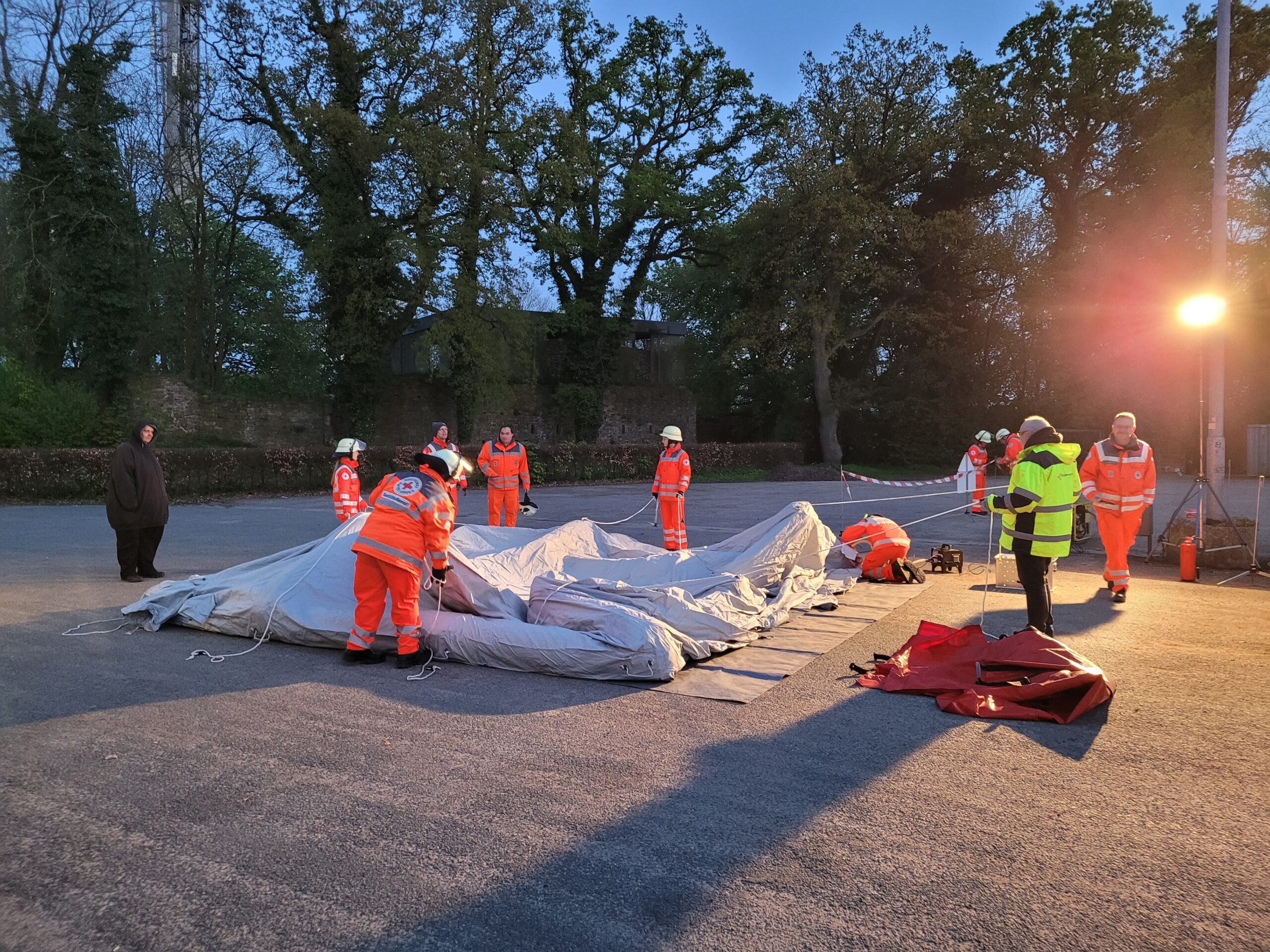Beim Dienstabend der Bereitschaft am Montag, den 22. April 2024 wurde eine gemeinsame Übung für die Einsatzeinheit 3 (EE 3) des Katastrophenschutzes NRW im Kreis Herford (bestehden aus den DRK-Ortsvereinen Löhne und Vlotho) bei der Burg Vlotho vorbereitet.