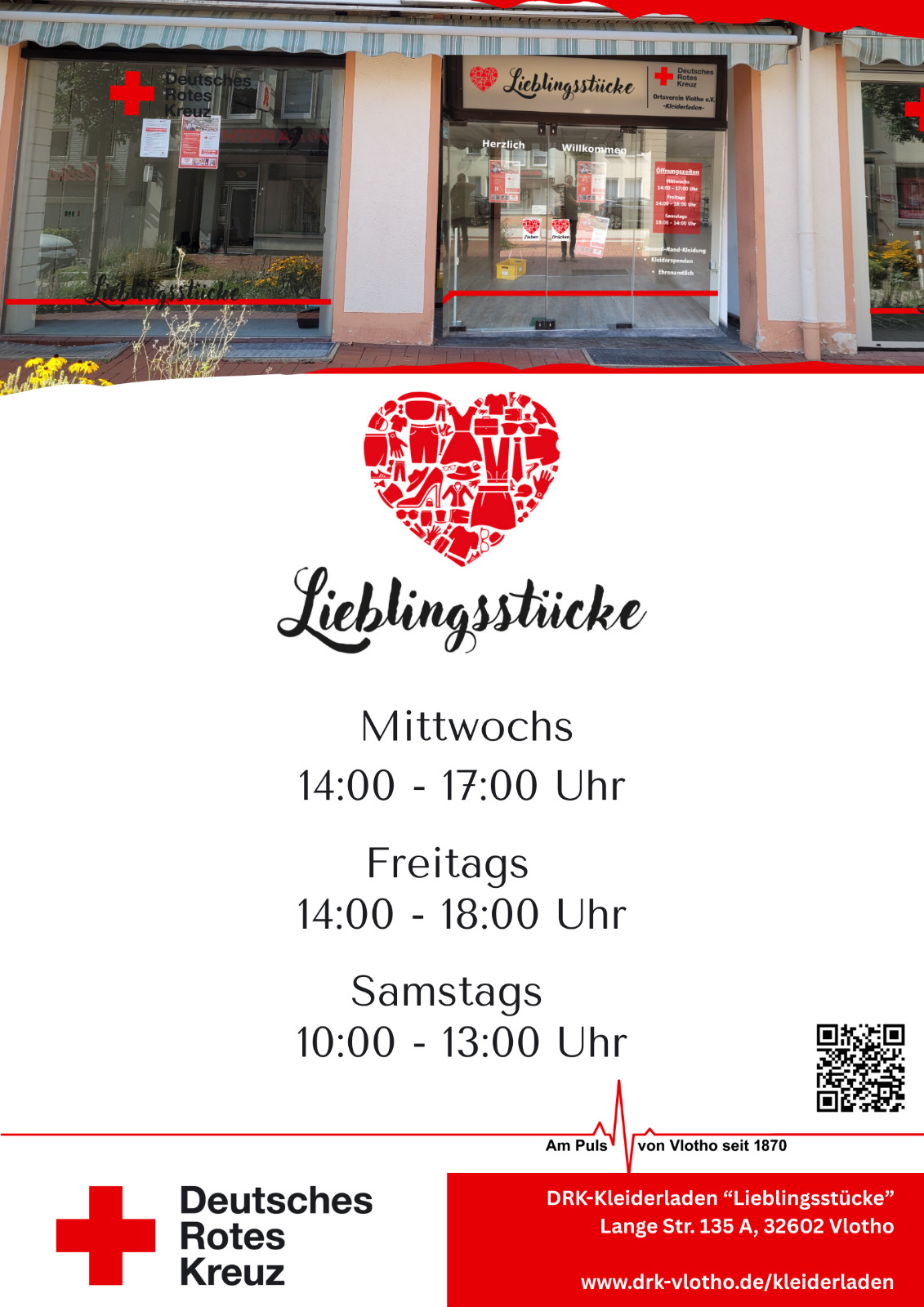 Der DRK-Kleiderladen ist in dem Ladenlokal, Lange Str. 135 A in Vlotho zu finden.