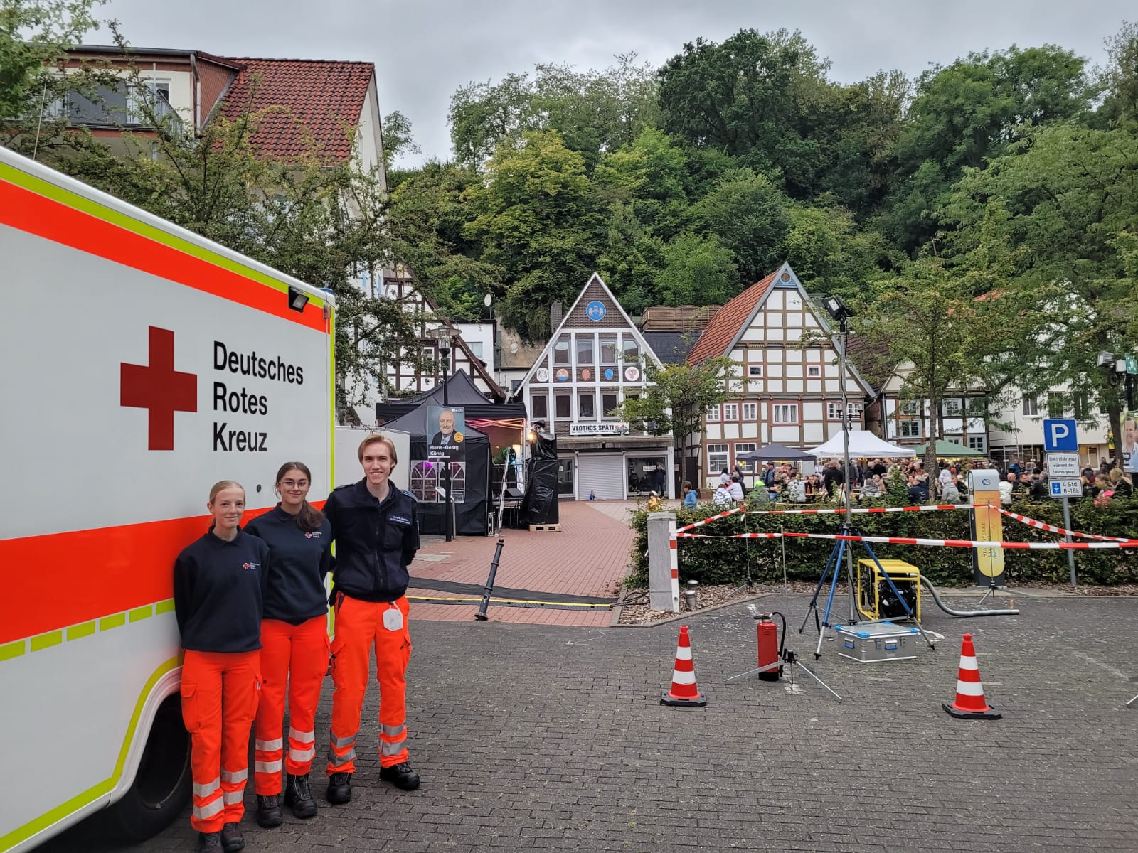 - Am Abend folgte dann der Sanitätswachdienst bei der Abschlussveranstaltung des vlothoer Kultursommers auf dem Sommerfelder Platz statt. Hier feierten gut 300 Menschen nochmal ausgiebig. Hier waren vier unerer Helfer*innen mit unserem Krankentransportwagen im Einsatz.